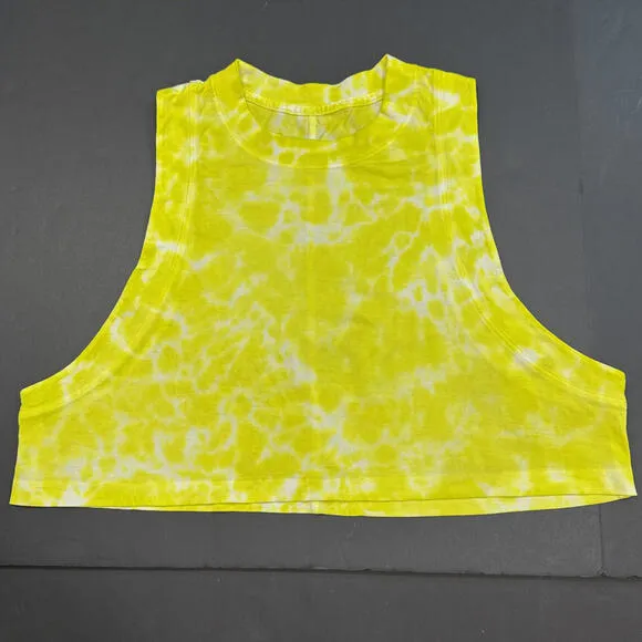 Lululemon Yellow Tie Dye All Yours Crop Cotton Athletic Gym Lounge Athleisure Top in very good preow... Show more