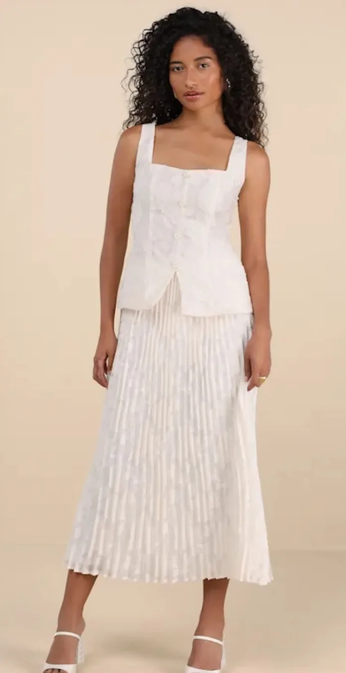 Alyona Cream Burnout Two-Piece Pleated Midi Dress White Size M - $72 - From Madison