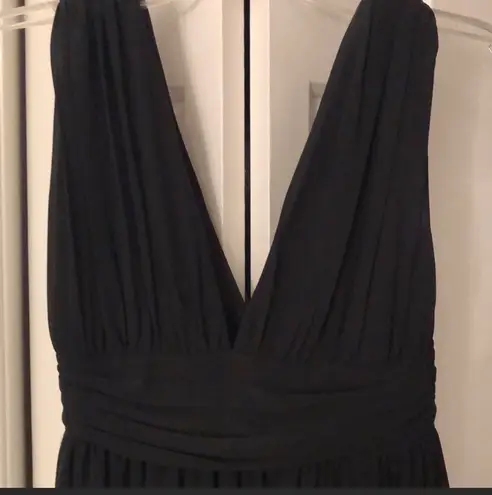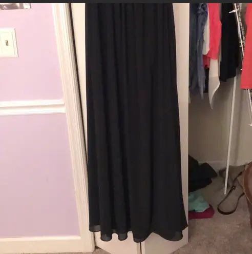 Black prom dress, worn once, low-cut, size small I’m 5’3 and the dress was altered at the bottom eno... Show more