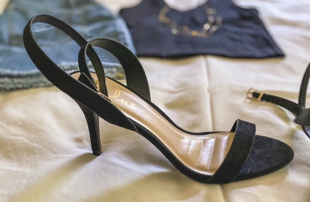 Faux-suede, black ankle-strap heels Brand-new/never worn; a little too small for me