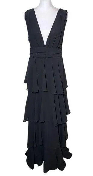 Lulus formalwear black maxi dress with beautiful tiered ruffles. Please make me an offer! Closure:... Show more