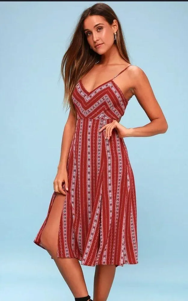 Lulus Calabash Rust Red Print Midi Dress dress up or down heels or flip flops Size XS - $40 - From Krystal