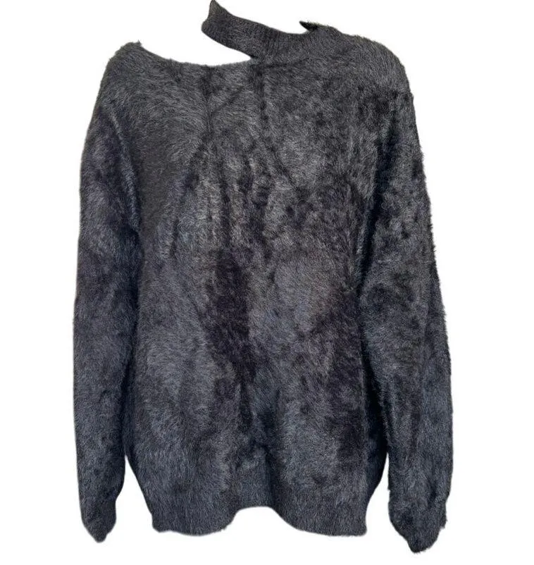 Lulus faux fur sweater Size M Black Asymmetrical choker style neckline