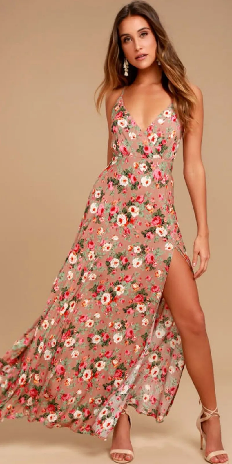 # Lulus dress, floral maxi dress, pink floral dress, sleeveless dress, v neck dress, slit dress, summer dress, bohemian dress, boho dress, casual dress, vacation dress, rayon dress, floral print, maxi dress large, Lulus