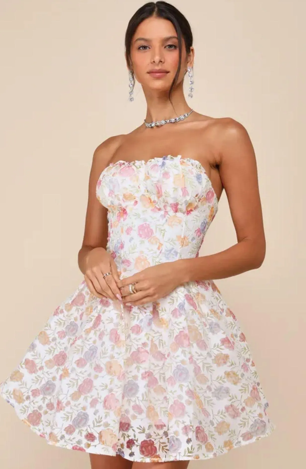 Lulus Deeply Adorable White Burnout Floral Strapless Mini Dress. Size XL in White Burnout Floral B... Show more