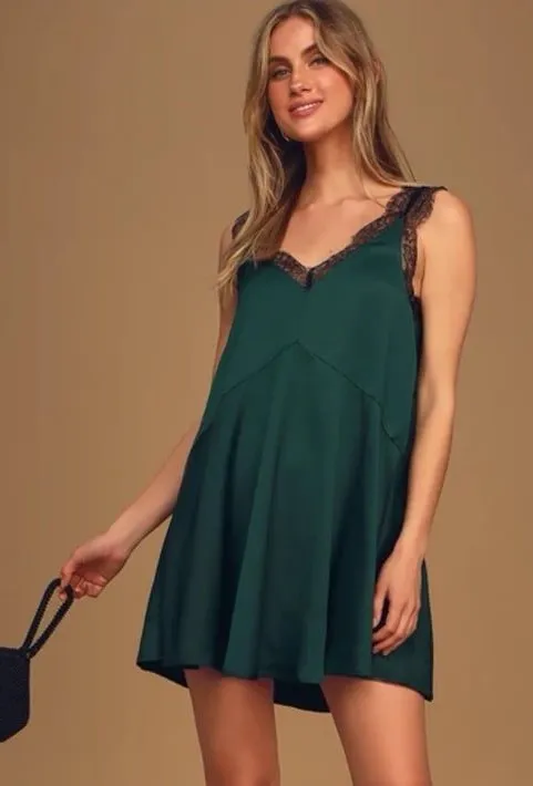 New with tags Lulus Forever My Love Emerald Green Satin Lace Sleeveless Swing Dress. Retails $55 #s... Show more