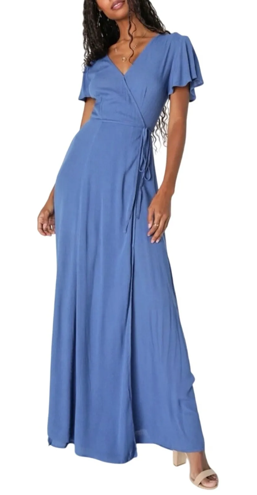New with tags Lulus Heart of Marigold Denim Blue Wrap Maxi Dress Breezy woven rayon drapes into a su... Show more