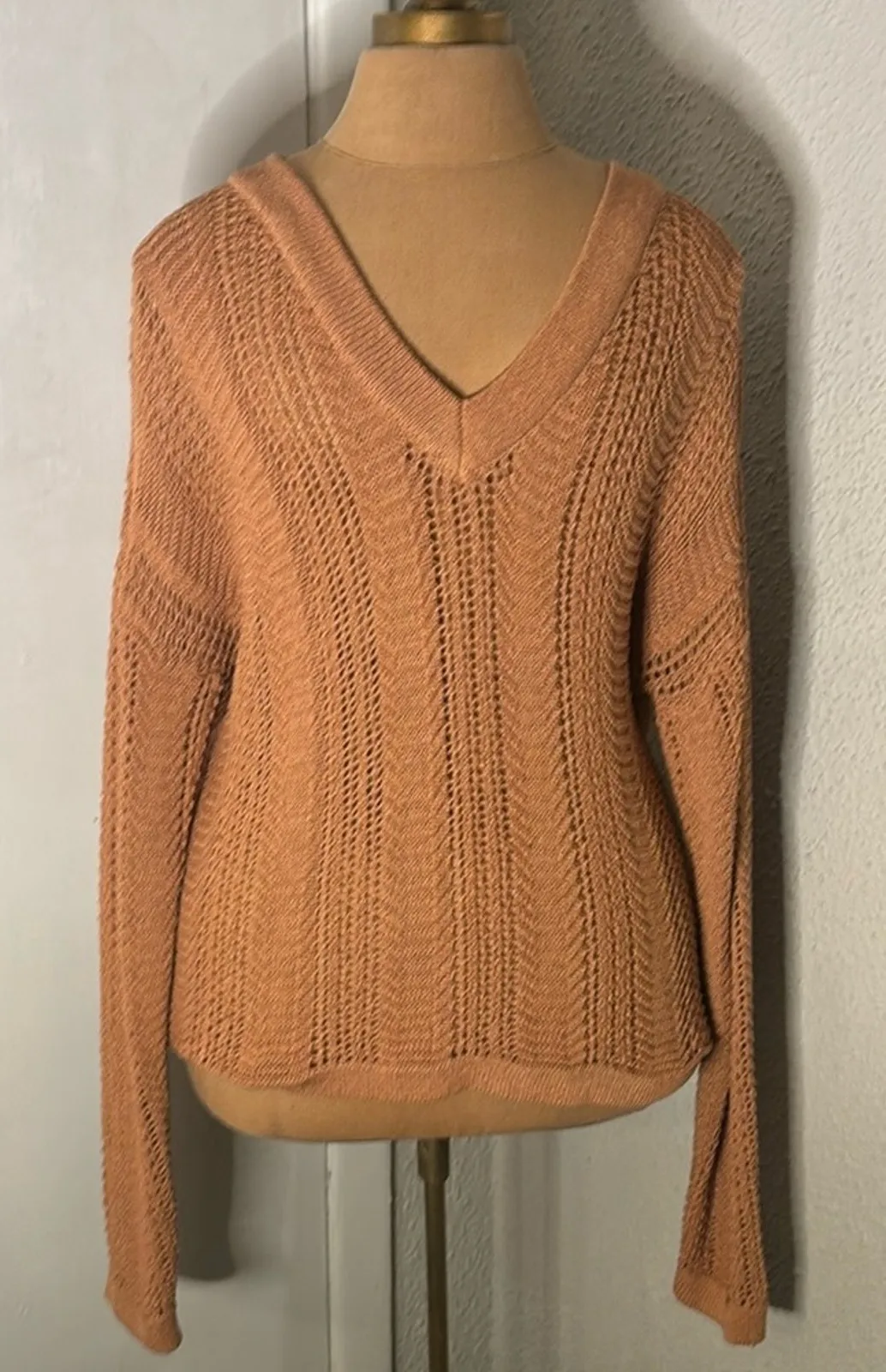 Style: Long sleeve v-neck sweater Color: Brown Size: S Armpit: 19” Length: 24” Sleeve: 31” Conditio... Show more
