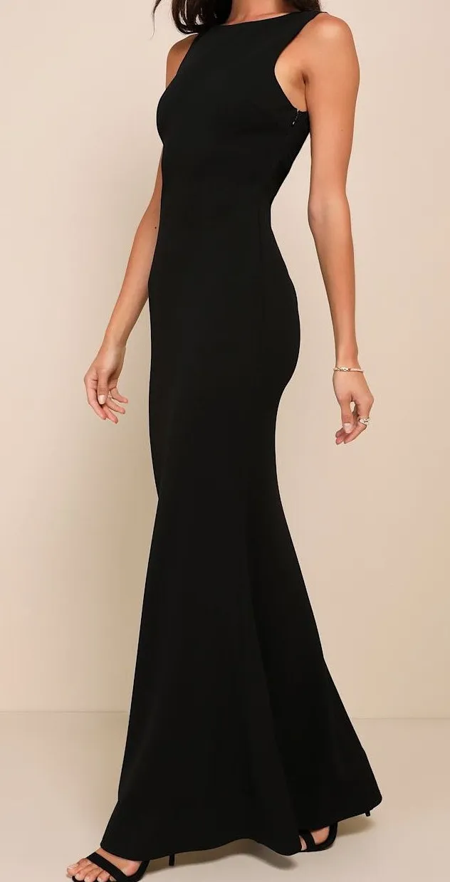 Lulus Love In Your Eyes Black Knotted Crew Neck Knit Mermaid Maxi Dress. Figure-loving stretch-knit... Show more