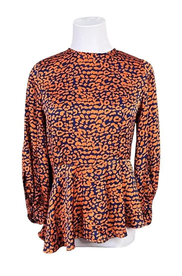 Lulu's C173T Color Me Wild Cheetah Print Peplum Blouse SMALL Orange Retro 80s. Polyester Spandex ble... Show more