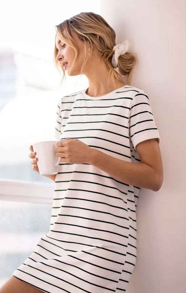 Lulu’s monochrome, cream and black, Cafe Society, stretchy, knit, comfortable T-shirt dress. Great,... Show more