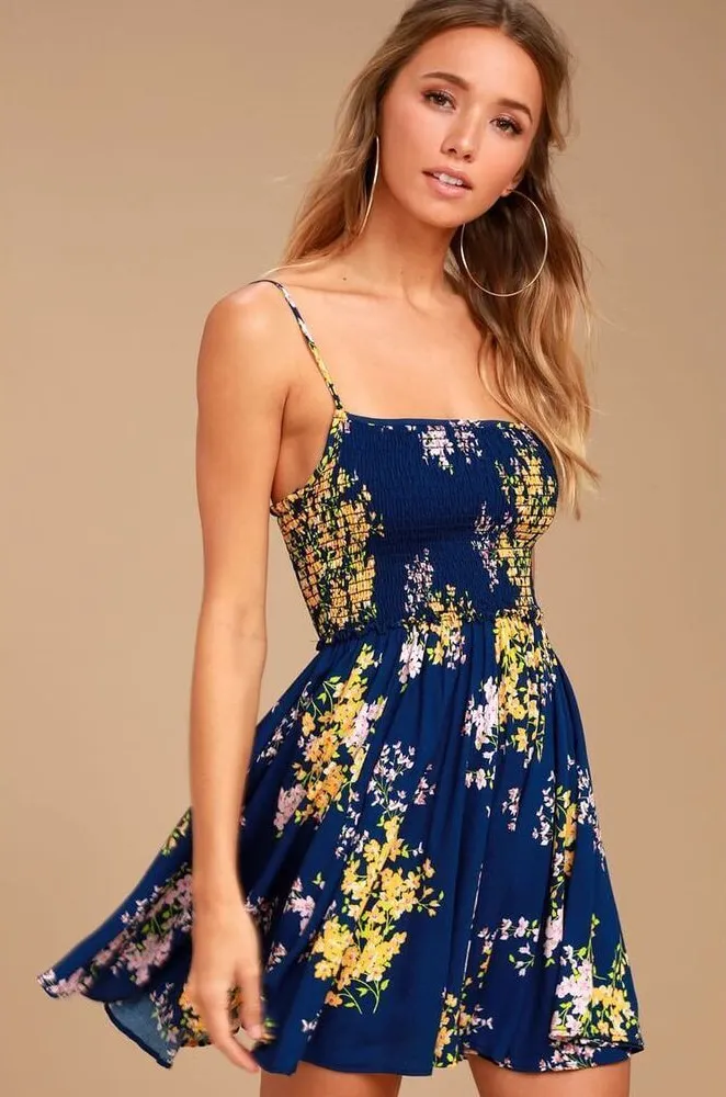 ✨Lulu’s Fairytale Bliss Navy Blue Floral Print Skater Dress Size: Large The perfect sundress is at... Show more