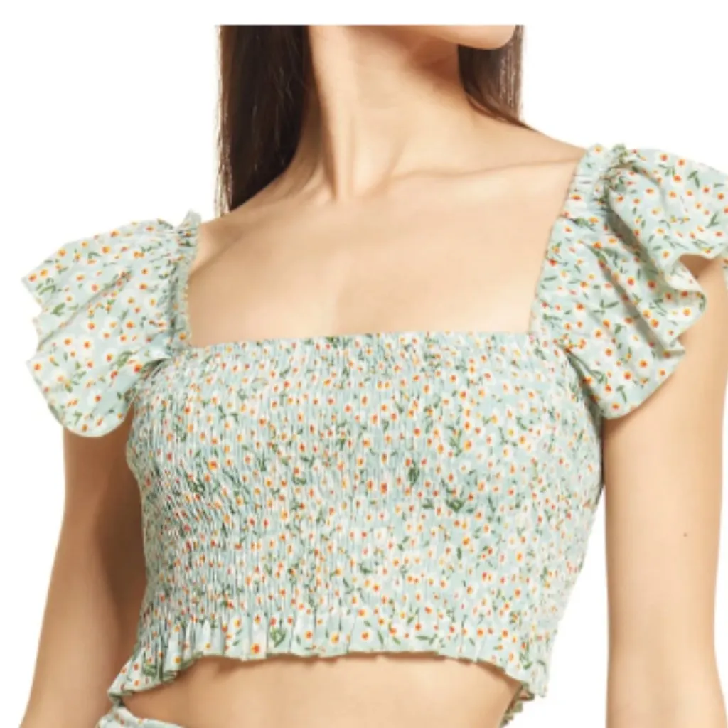 Lulu's Flourishing Dreams Mint Green Floral Print Smocked Crop Top Size XL Brand new with tags! Exc... Show more