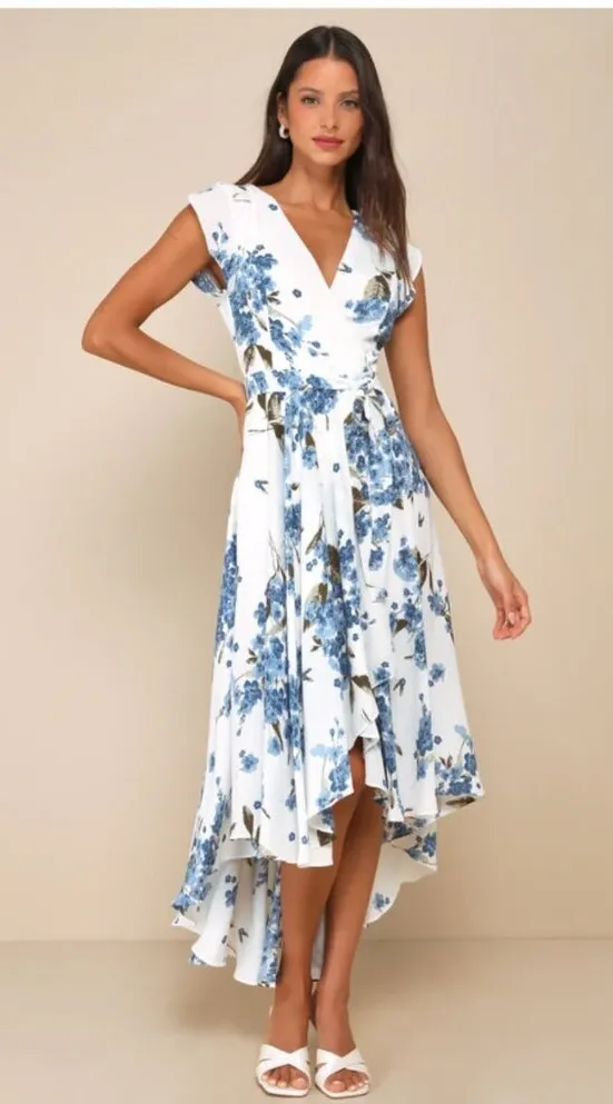 Lulu's French Countryside White Floral Print High-Low Dress Size M - $54 - From Lindsey