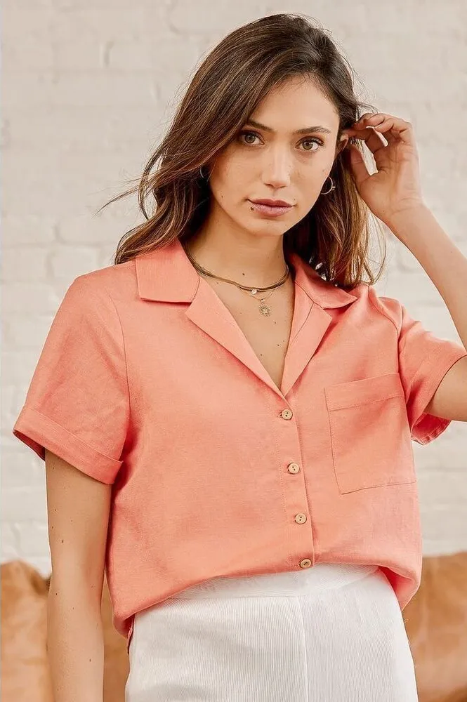 Lulu’s NWOT Lovely Legacy Coral Pink Short Sleeve Button-Up Top Size: Small Color: coral Condit... Show more