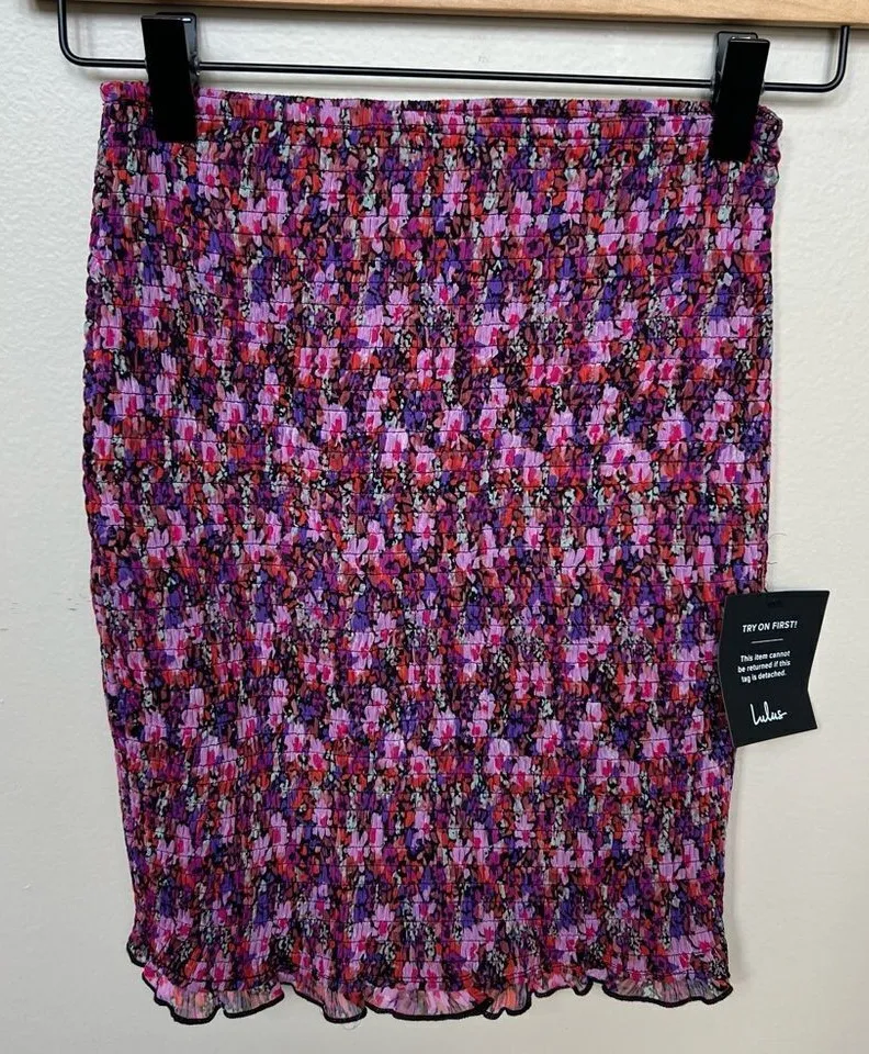 Lulu’s NWT Pink and Purple Floral Smocked Skirt Size XS Could be worn as a mini skirt or as a tu... Show more