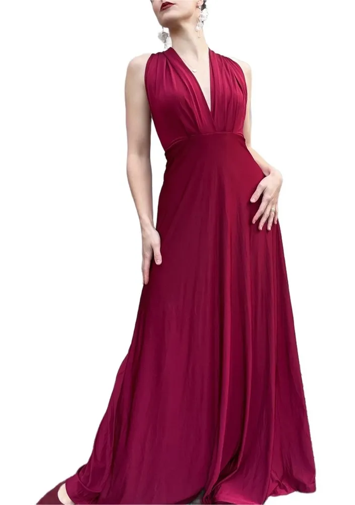 Lulu’s Red Stretch Jersey Knit Plunge Halter Neckline Dramatic Bow Detail Glam Formal Maxi Dress Pro... Show more