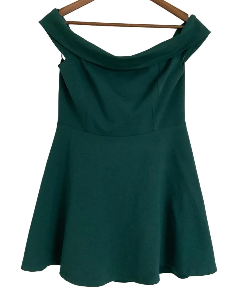 Flirty dark green dress features a full skater skirt. It is lined and has a hidden zipper in back. I... Show more