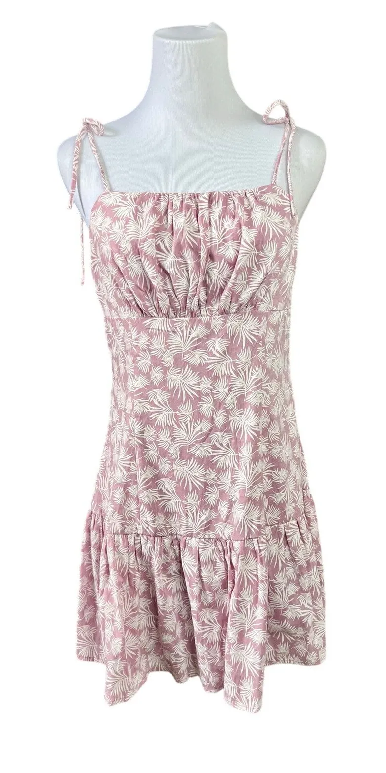 Lulu's VD3246 Sunny Tropics Mauve Pink Palm Tie Straps Mini Dress Sundress MEDIUM NWT. Fully lined w... Show more