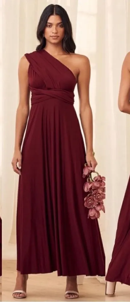 Lulu’s Tricks of the Trade Multiple ways to wear Burgundy Maxi Dress Sz XS measurements in phot... Show more
