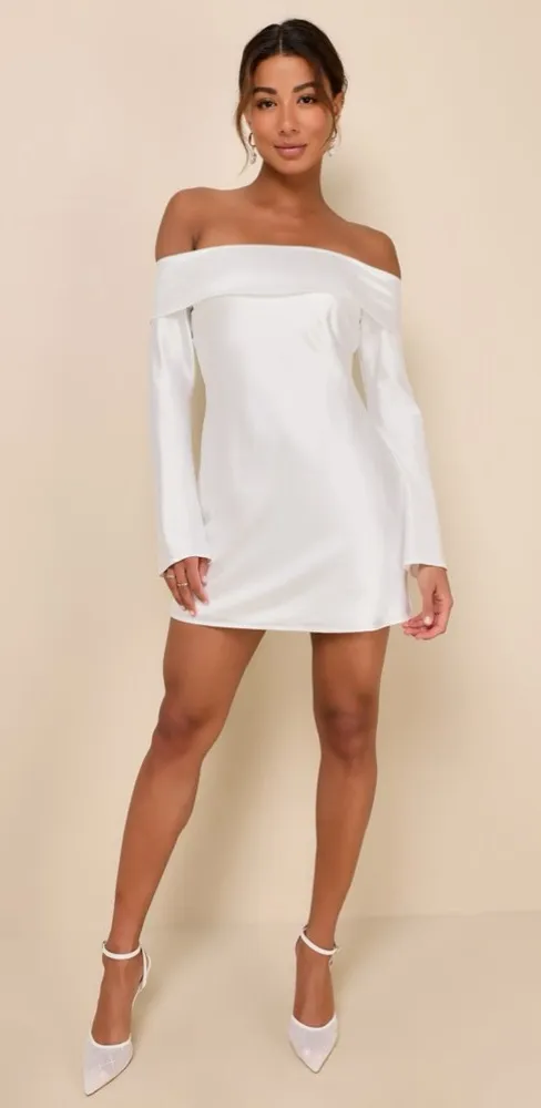 Lulus Luxurious Vision White Satin Off-the-Shoulder Mini Dress. Size XS. Excellent condition. This... Show more