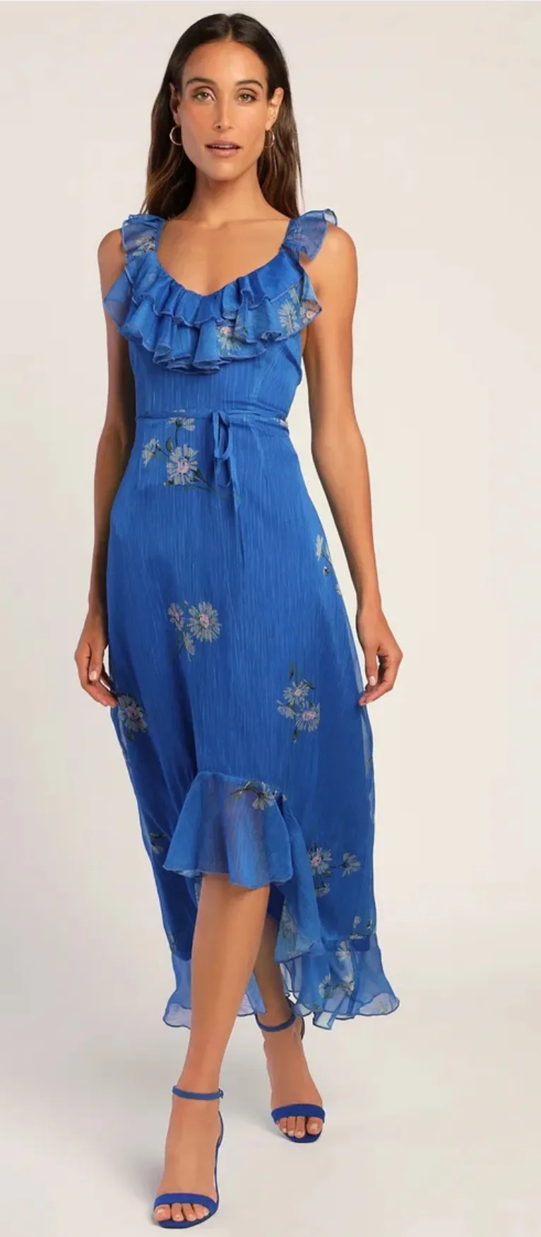 Embrace sophistication with this royal blue sundress from Lulu's, designed for wedding guests and co... Show more