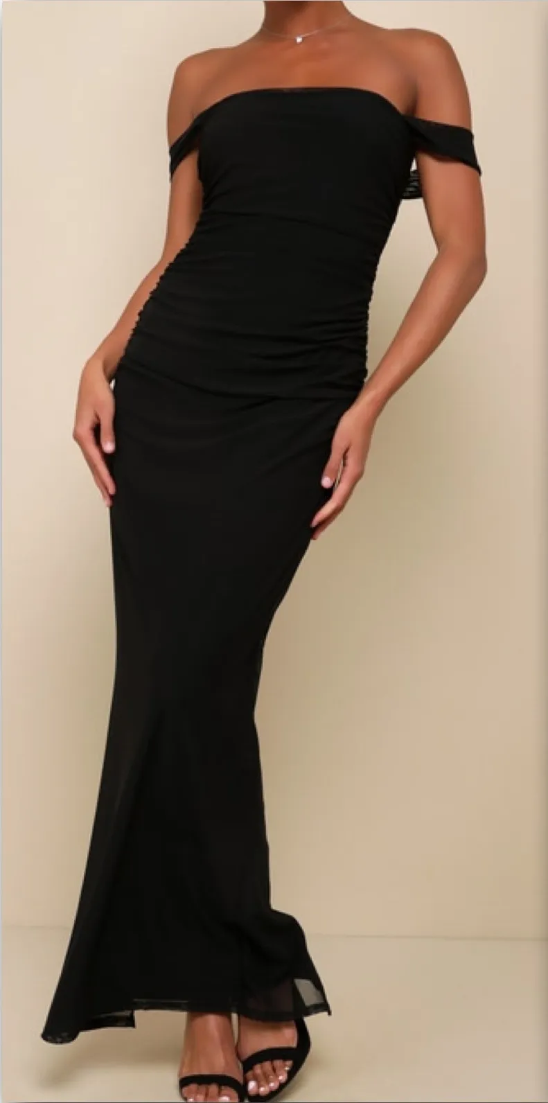 Lulus Amazing Presence Black Mesh Flirty Ruched Column Maxi Dress. Stretchy mesh construction, slee... Show more