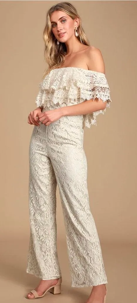 This is a new with tags Lulu’s Waiting For Forever Cream Lace Off-the-Shoulder Cream lace (with intr... Show more