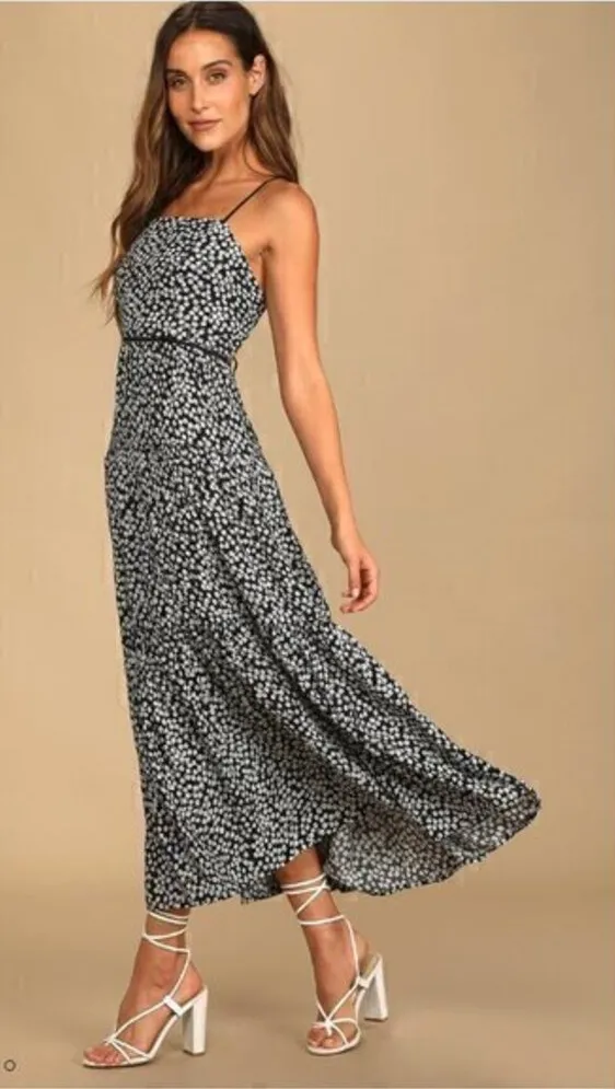 NWT Lulu's Kind Heart Black Floral Print Tiered Lace-Up Midi Dress Size M - $41 New With Tags - From Lindsey