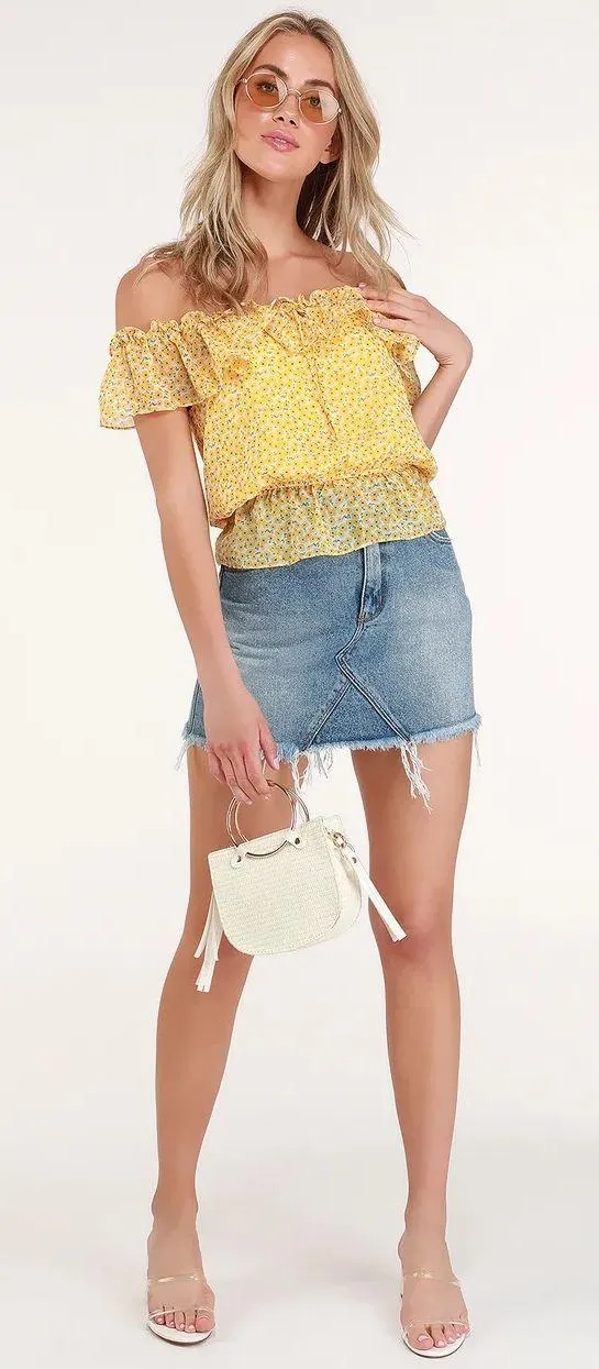 Yellow floral off the shoulder top only worn for a few hours! In great condition size small!