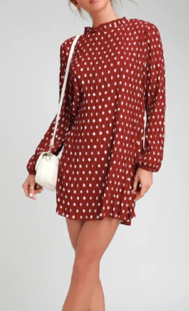 Leave an impression in the Lulus Pleat to Meet You Wine Red Polka Dot Long Sleeve Shift Dress! This... Show more