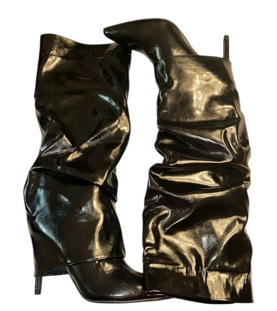 Lulus Pull on Black Fold Over Knee High Boots.Approx measurement 3.75”.NIB