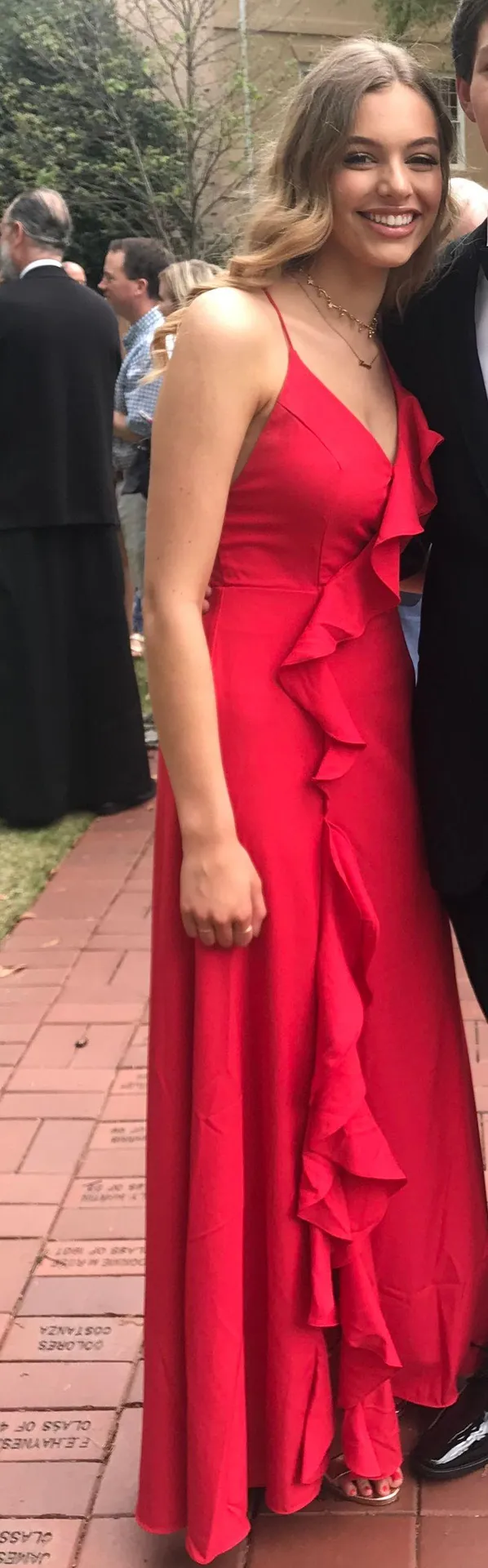 Formal red ruffle dress, only worn once. So cute and has no flaws!
