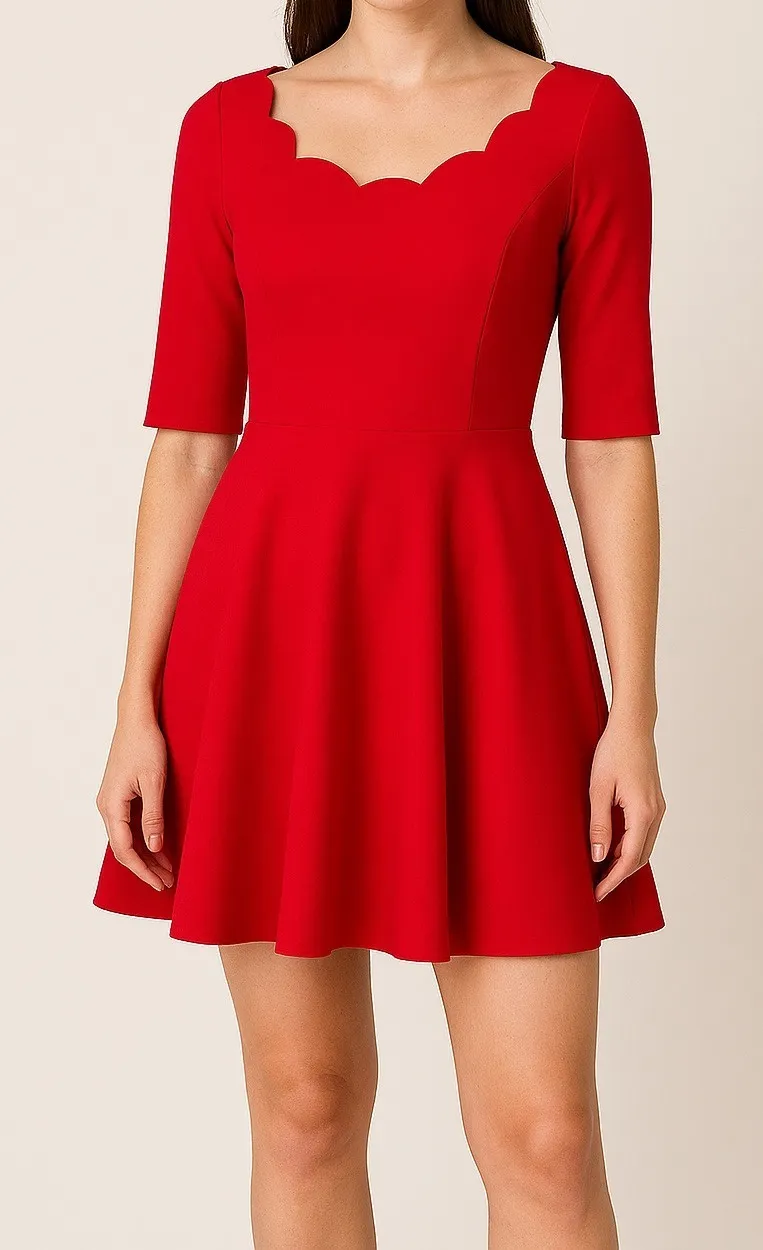 Lulus Red Mini Dress Size L Scallop Trim Skater Flare Romantic Feminine NEW Thick Stretch Knit Un... Show more