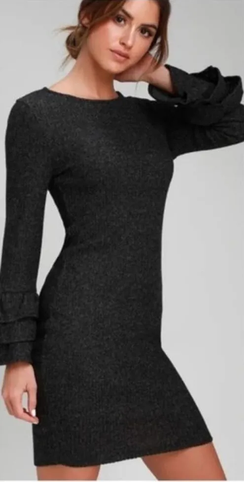 Lulus Rooney Heather Dark Grey Flounce Sleeve Bodycon Sweater Dress Lulus Exclusive! Sweet and sass... Show more