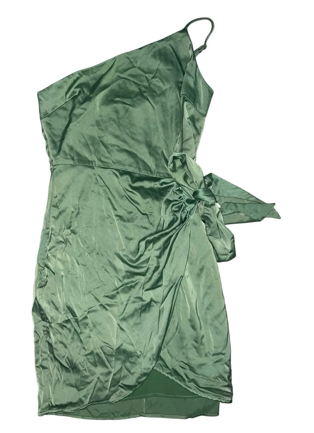 Lulus sage green shiny mini dress cinch tied adjustable waist women’s small - $18 - From Haylie
