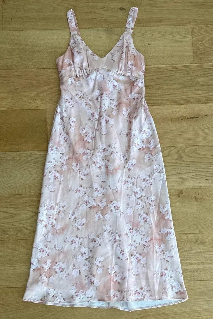 Lulu's Sweet Brilliance Light Pink Floral Satin Slip Midi Dress CL1225-D6 Size : L Color : Pink Cond... Show more