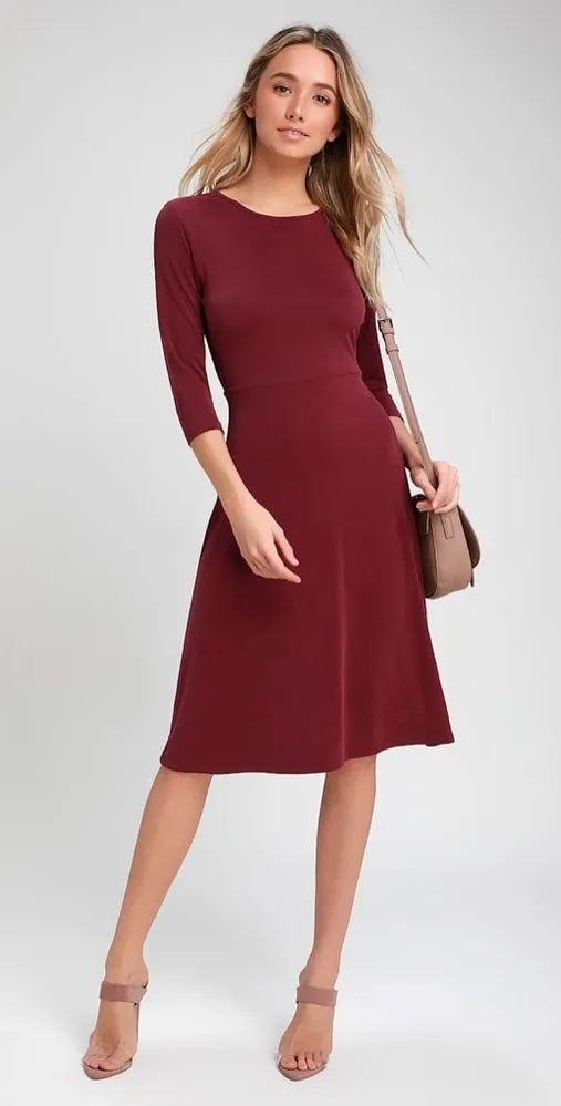 Gently used, great condition. Lulus Exclusive! The Lulus Sweet Like Me Burgundy Long Sleeve Midi Sk... Show more