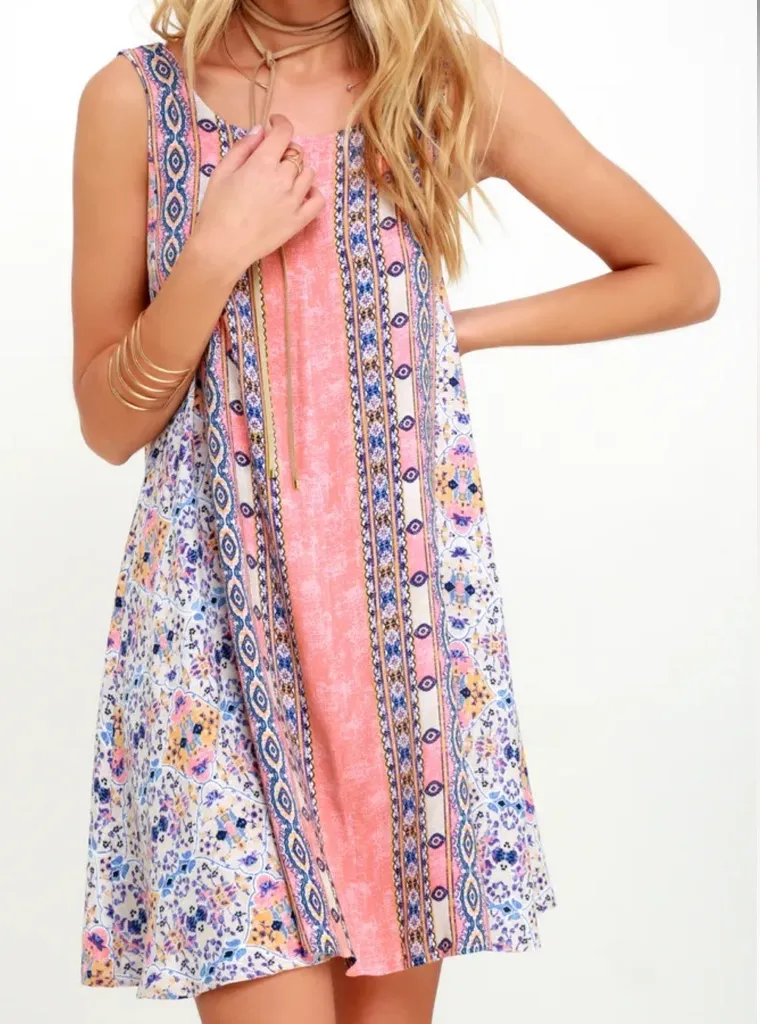 The Lulus Whisk Me Away Coral Pink Print Swing Dress is sure to sweep you off your feet! Coral pink,... Show more