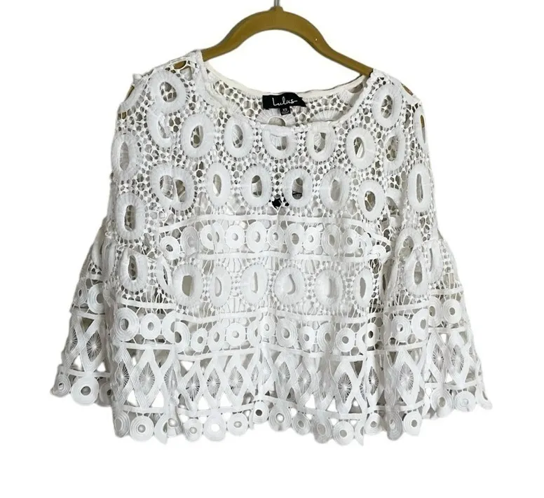 Lulus White Boho Flare Sleeve Eyelet Top XS Crop - $12 - From Madison