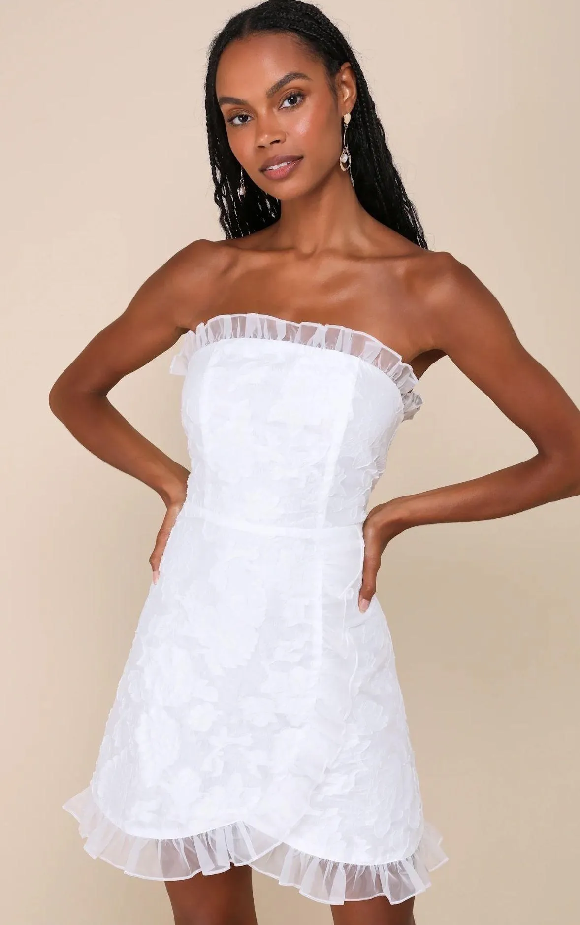 Lulus Exclusive Sweetness White Floral Jacquard Ruffled Mini Dress Brand New Size XL