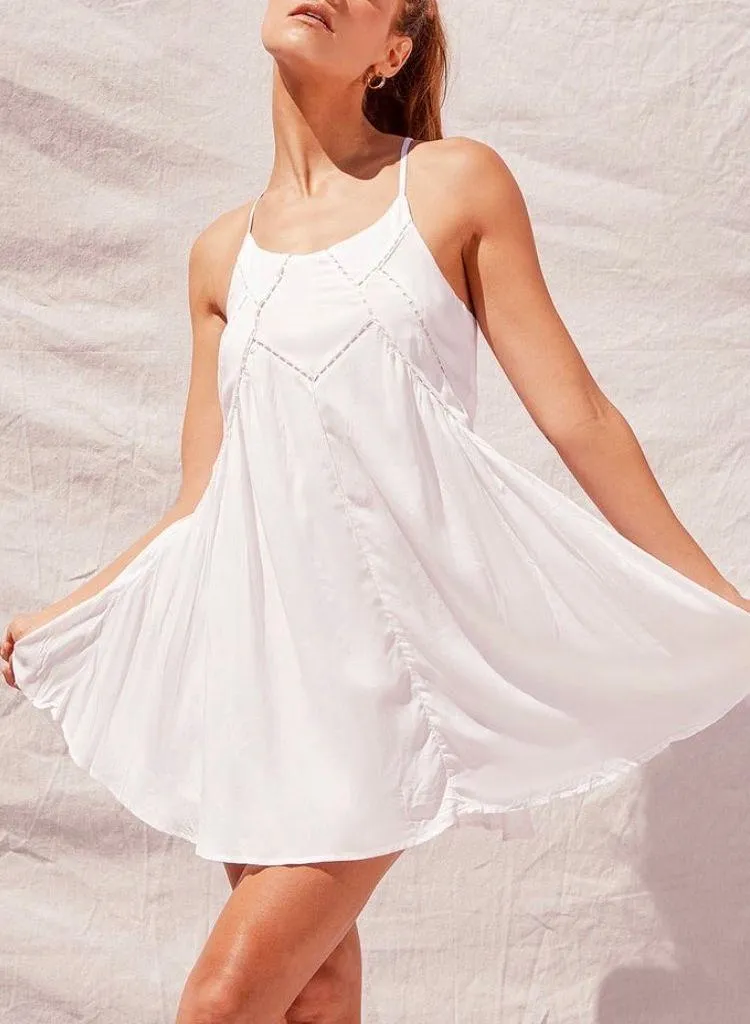 Perfect for graduation! Lulus white spaghetti strap dress with eyelet detail. Lined so not see throu... Show more