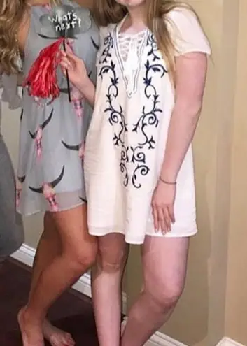 Lulus White With Blue Embroidered Shift Size M - $12 (80% Off Retail) - From Abby