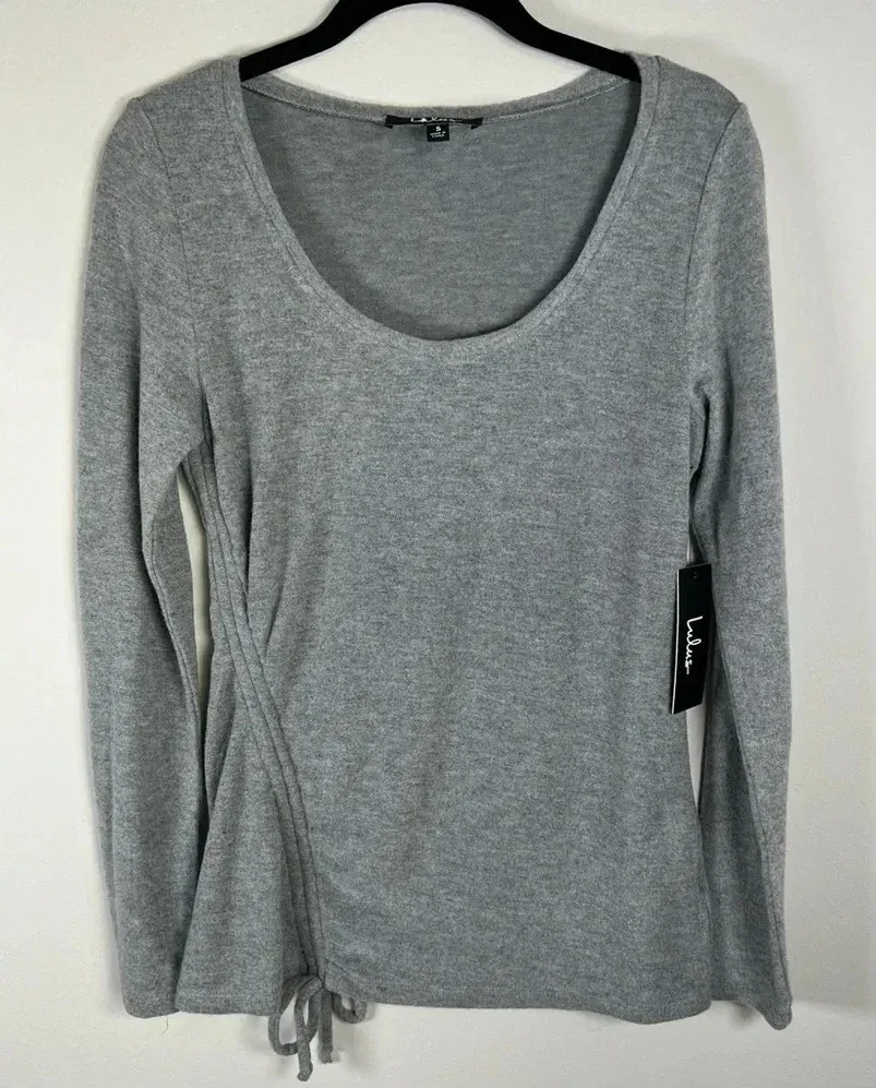 Lulus Long Sleeve Scoop Neck Shirt Gray Cinch Side Detail Super Soft Fabric Stretch Women's size s... Show more