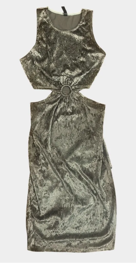 Shine in this elegant metallic velvet dress, perfect for any special occasion. The shimmering silver/gold hue adds a touch of glamour to your wardrobe. Retail: $30 Condition: great Size: large Brand: Luna chix Detail: - shimmery crushed velvet material - side cutouts - side slit - midi length - tank top - bodycon Tags/ winter, holiday, party, New Year’s Eve, NYE