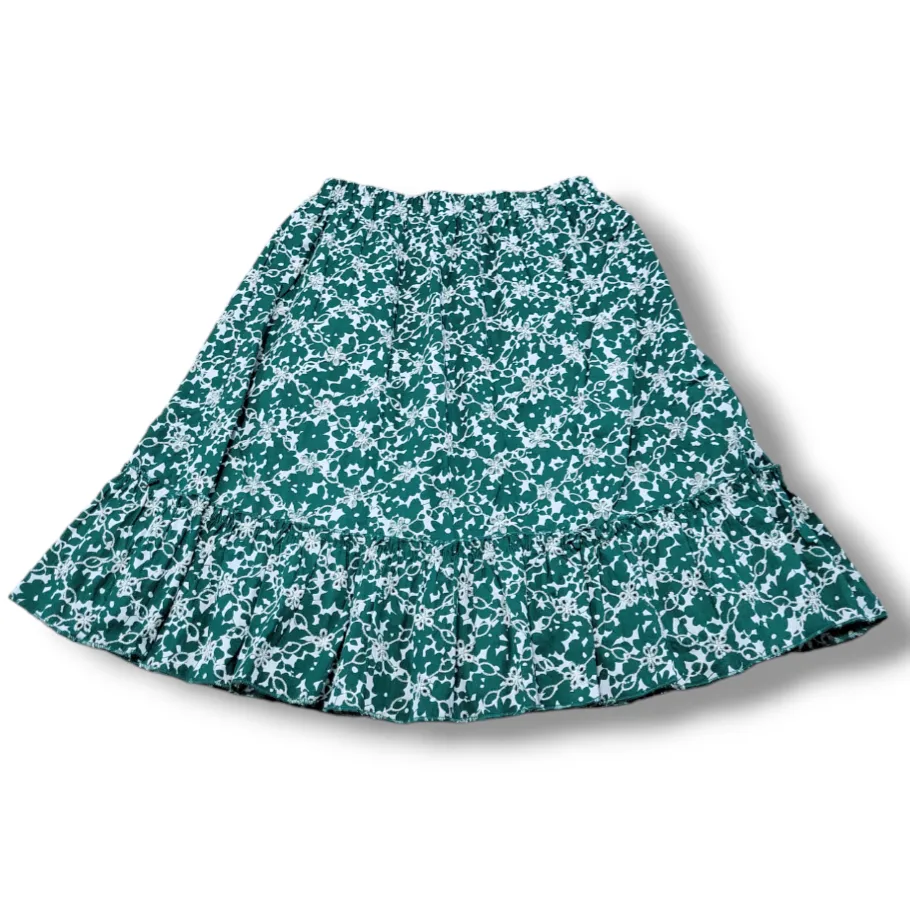 Luna Moon Skirt Size Small W24" in Elastic Waist Embroidered Floral Print Ruffle Women's Skirt Lined A-Line Skirt With Lining Floral Embroidery And Floral Print Green With White 95% Cotton 5% Polyester Made In China Used Condition See Pictures For Condition All Measurements Were Measured Flat Waist 14" Elastic Waist Full Length 22.5" Hip 24" G4.8z