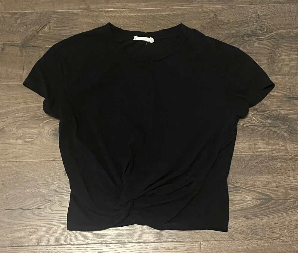 Lush Black Short Sleeve Crop Top w/ Front Knot, Size Small - $20 - From Christina