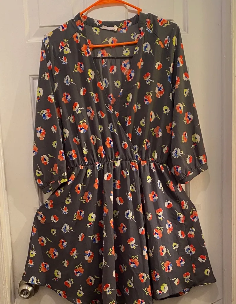 Stylish gray midi dress by Lush. Features a vibrant floral pattern. Perfect for any occasion.