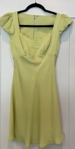 Ethereal charm comes to life in this darling green mini dress. The design begins with a flattering square neckline framed by sweet puff sleeves, enhanced with delicate lace trim. A cinched bodice flows into an A-line silhouette, promising a comfortable and flattering fit. Turn around to reveal a flirty, cutout back secured with three delicate buttons, adding a touch of playful allure. Perfect for a garden party, a romantic date night, or a stylish brunch with friends.