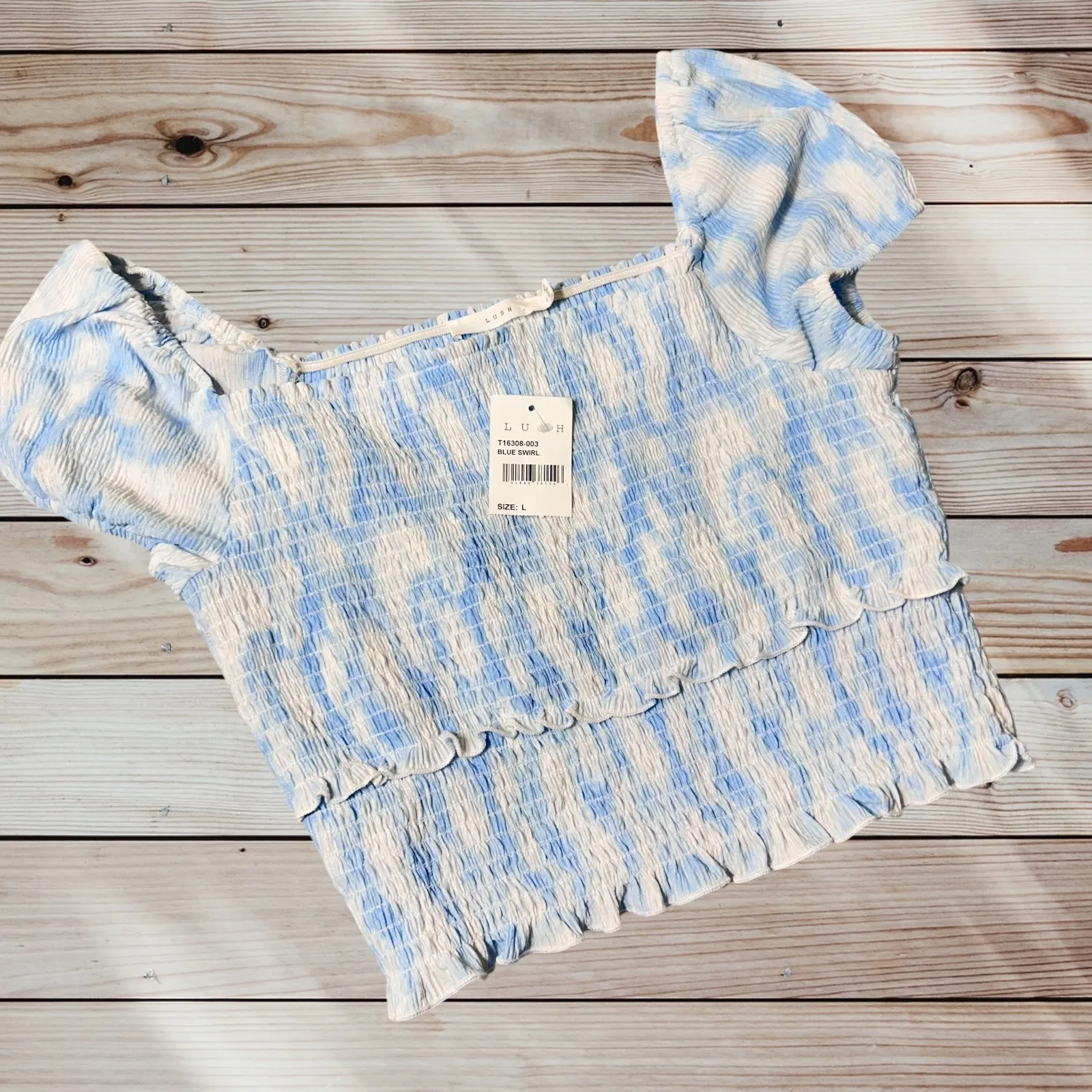 Features Color: Blue Type: Blouse Department: Women Style: Cropped Material: Polyester, Polyester B... Show more